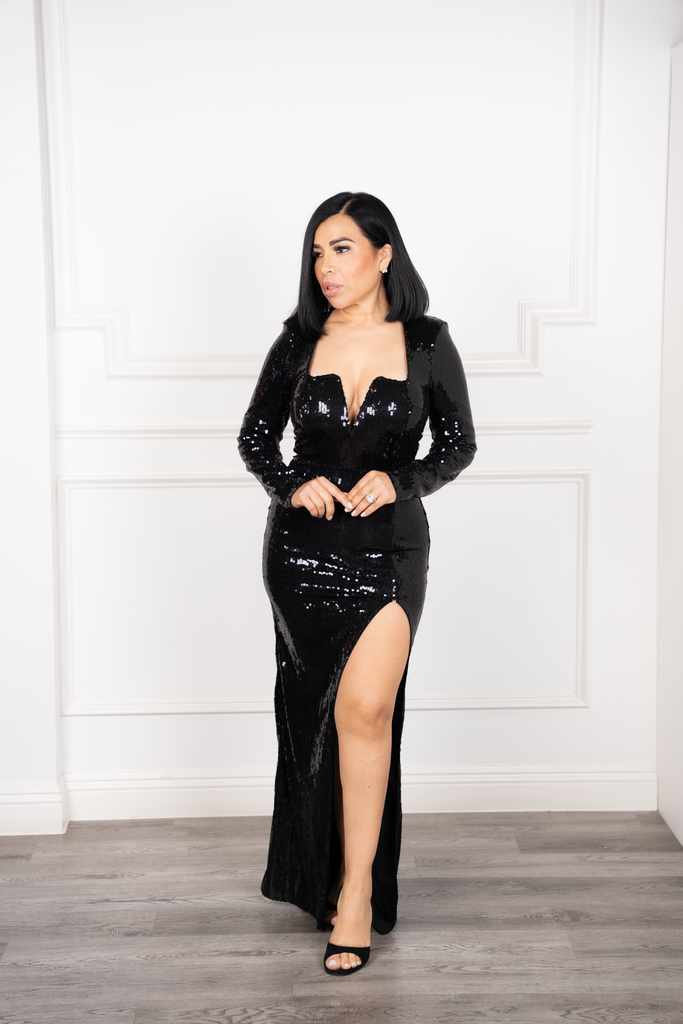 Valeria - Black Sequin Elegance Maxi Dress