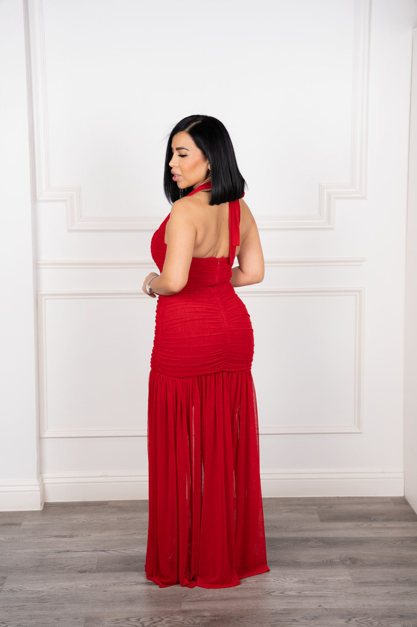 Ruched Halter Mermaid Dress – Sleek & Sculpting